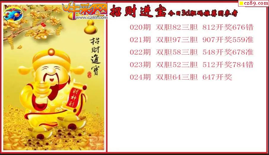 > 26年024期3d 招财进宝今日胆码推荐图参考