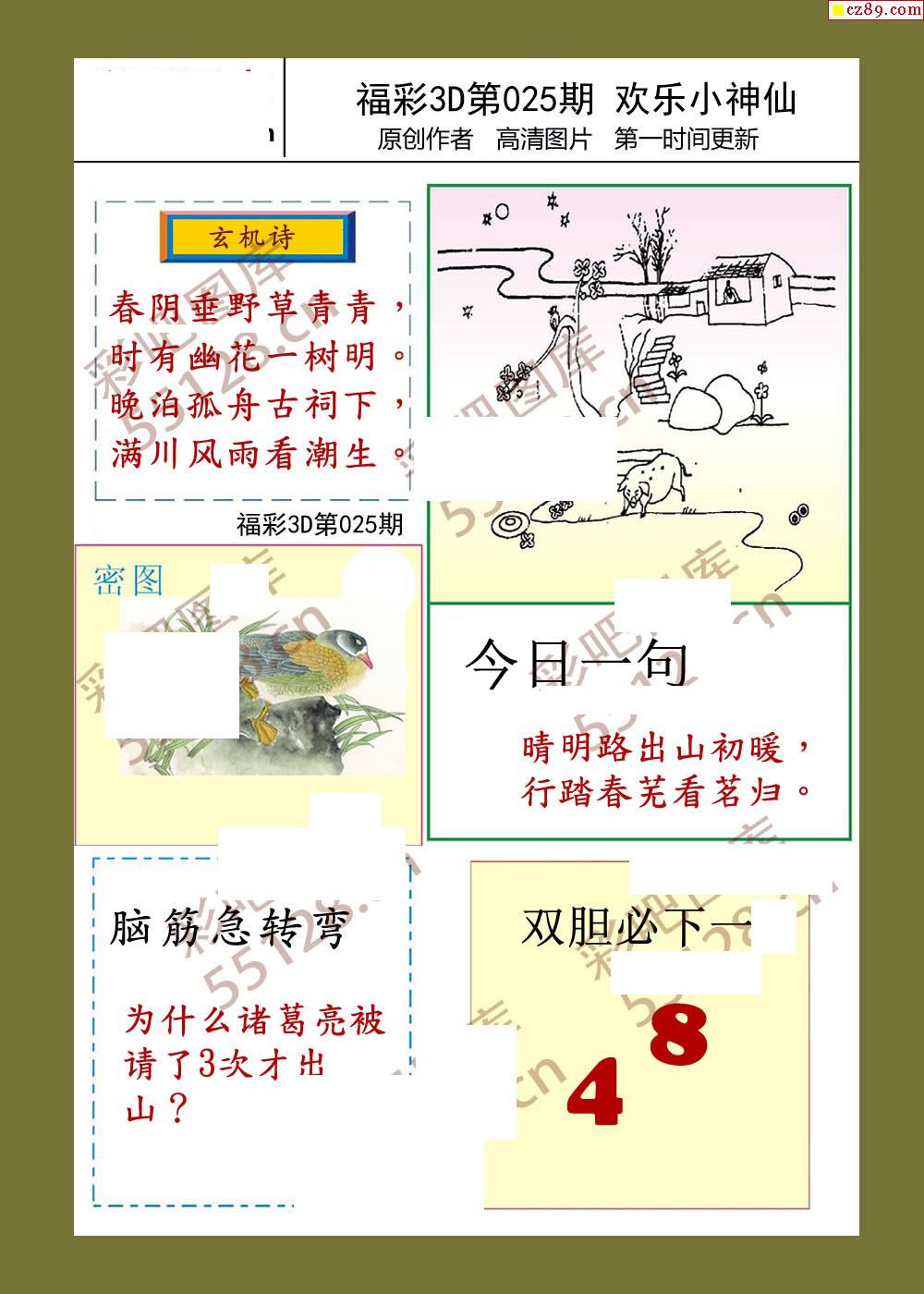 > 26年福彩3d025期欢乐小神仙预测图